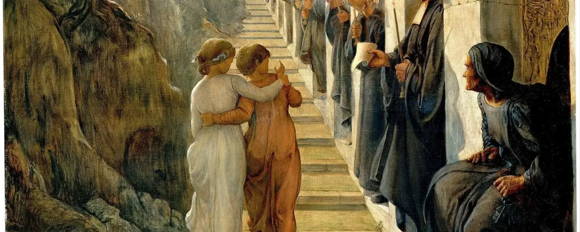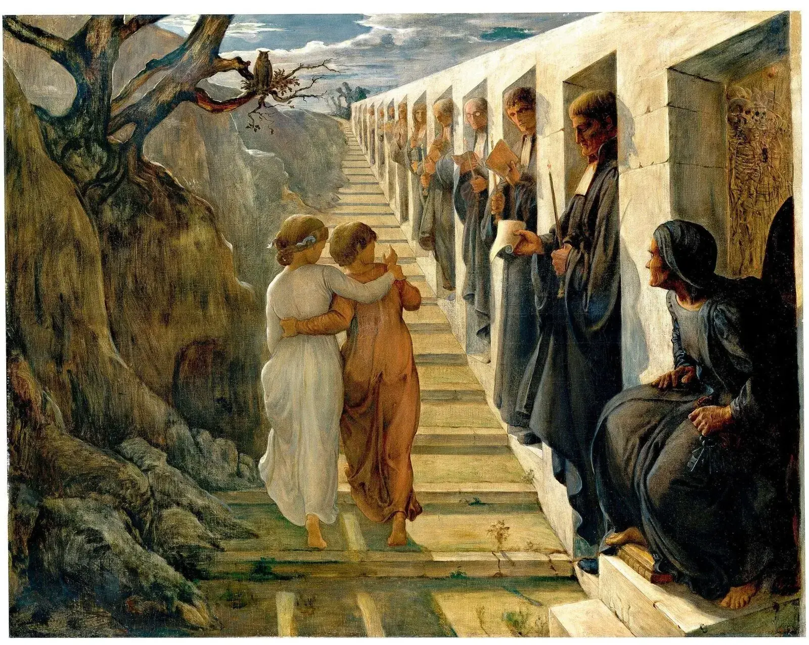 Illustration : Le mauvais sentier, Louis Janmot (1850), huile et tracé au crayon graphite sur toile, 112,6 x 143,4 cm.