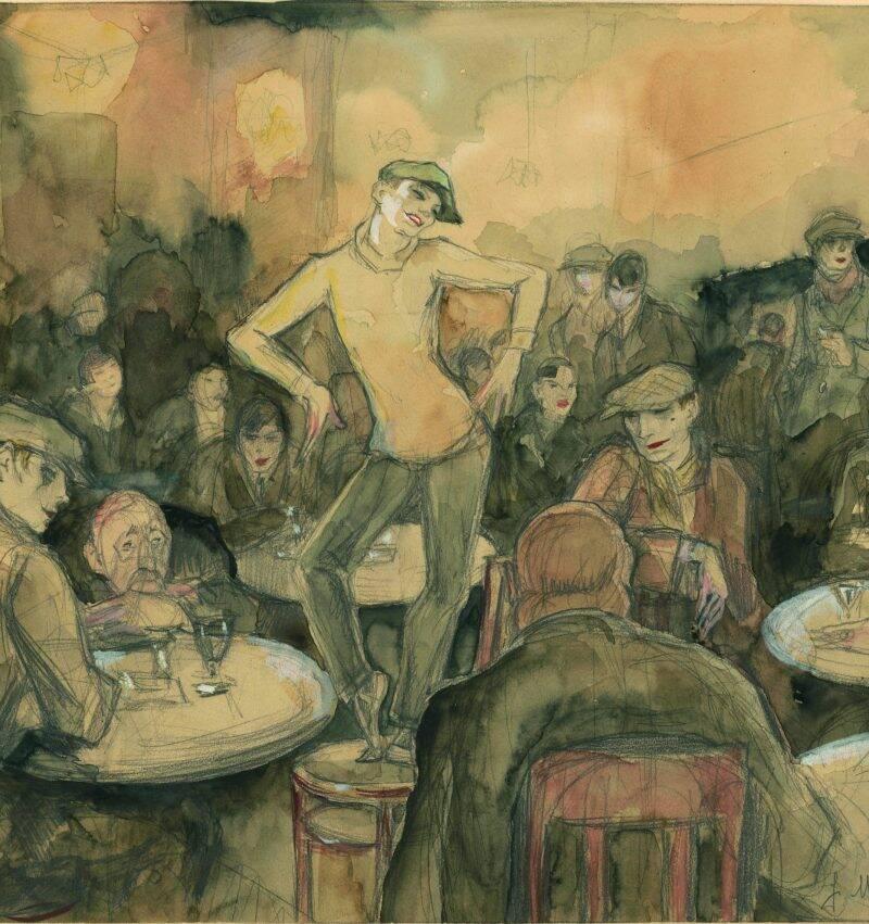 L’illustratrice Jeanne Mammen est ainsi mise à l’honneur. Née à Berlin en 1890, elle grandit tout d’abord à Paris puis expose dès 1912 au Salon des Indépendants. La Première Guerre Mondiale met un terme à ses velléités artistiques et Jeanne Mammen se retrouve sans ressources à Berlin. Elle réalise quelques dessins, illustrations pour des revues et croque dans les années 30 les lieux de rencontre lesbiens.