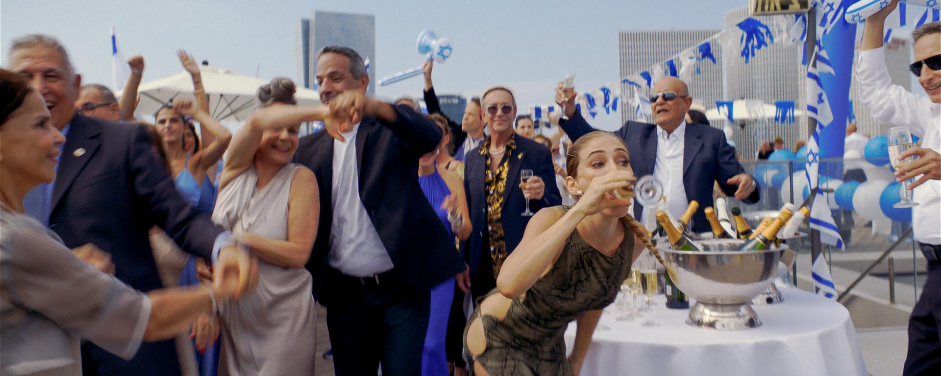 J : Justement, décortiquons. Le protagoniste, ironiquement baptisé Y., apparaît comme un Candide des temps modernes, un personnage de comédie musicale parachuté dans un récit de violence politique. Le film s’ouvre sur un faux hédonisme spectaculaire, saturé de fêtes, de couleurs et de sons, percé de violences souterraines et de malaise assumé. Puis, Y. accepte de composer un hymne officiel pour Israël soutenant le génocide à Gaza, et le film bascule dans une seconde partie plus mélancolique, glaciale, comme un aveu d’impuissance. L’épilogue tente désespérément de recoller ce cirque des horreurs en un seul geste, sans en trouver issue. À mes yeux, Oui n’est rien d’autre que cette oscillation : une tentative d’accorder la mélancolie et la bouffonnerie.