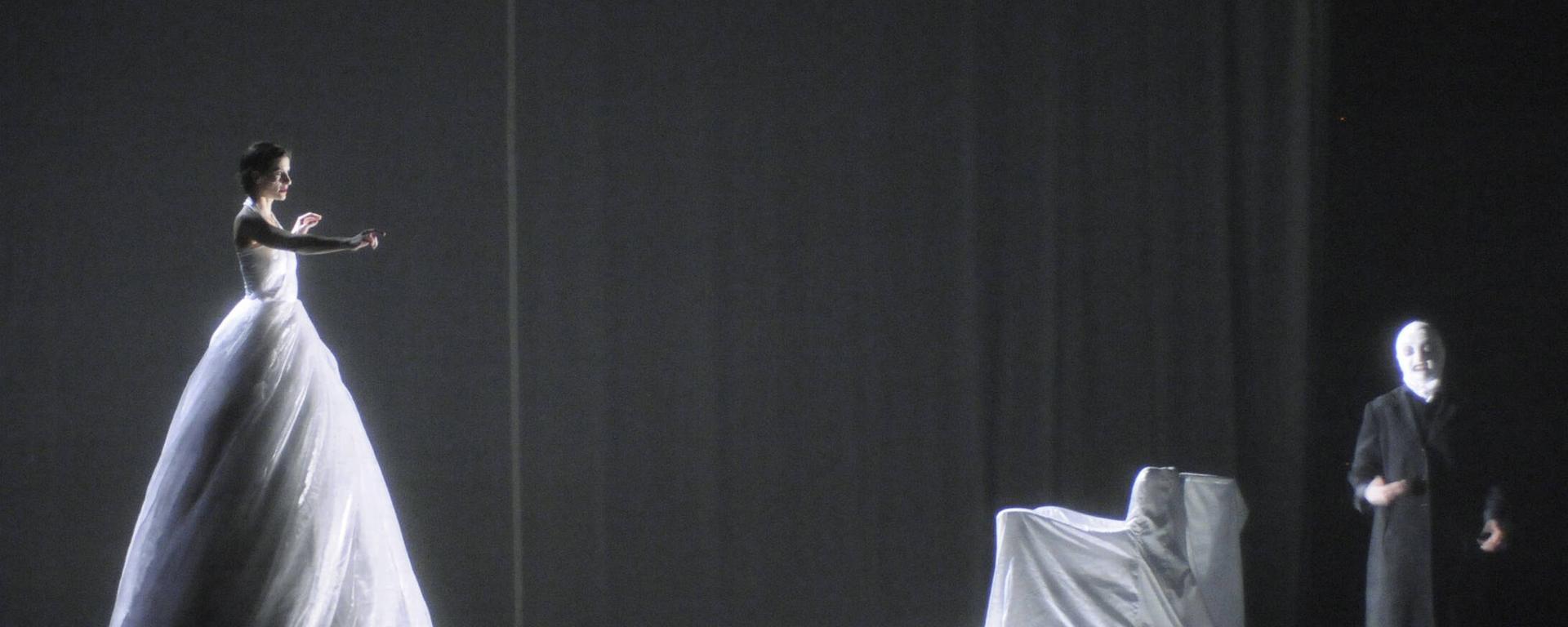 Ainsi, le bonimenteur/conteur au torse et au visage couvert de peinture blanche nous accueille sous sa poursuite bien ronde, tel un Monsieur Loyal traditionnel ; mais il s’exprime dans un micro, d’une voix volontiers distante et remplie de fatalité cynique sur le destin de Pinocchio. J’ai eu l’impression d’entendre un vieil oncle ironique me raconter cette histoire bien connue, l’un de ceux « à qui on ne la fait pas »… L’ambiance de cirque dans lequel baignera Pinocchio par la suite est rappelée en fond de scène par une discrète mais efficace composition sonore quasi permanente signée par Antonin Leymarie. Dans celle-ci, des traces encore une fois : traces d’accordéon, d’orgue de barbarie, d’une musique populaire et festive qui dans ce monde étrange où nous fait pénétrer Pommerat résonne étrangement, comme un écho lointain des premières formes de ce conte que l’on contemplerait avec notre distance moderne. Même chose pour les assassins rencontrés dans les bois, qui ne sont en réalité que les brigands déguisés ; ici, ils sont déguisés au premier sens du terme, c’est-à-dire couverts de pied en cap d’une cagoule blanche façon Ku-Klux-Klan, et demeurent malgré leurs desseins agressifs d’une politesse exagérée. Ceci nous renvoie à une image peut-être plus effrayante encore de la violence, habillée de blanc, lisse et aimable, débitant des horreurs avec une indifférence froide. En actualisant ces figures « d’opposants » typiques des contes à l’aide de références visuelles modernes, Pommerat ouvre une piste de lecture du texte sans pour autant nous l’imposer, tant le texte conserve sa distance ironique.