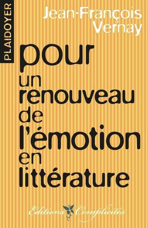 - Plaidoyer pour un renouveau de l’émotion en littérature, Jean-François Vernay, Editions Complicités, 2013.