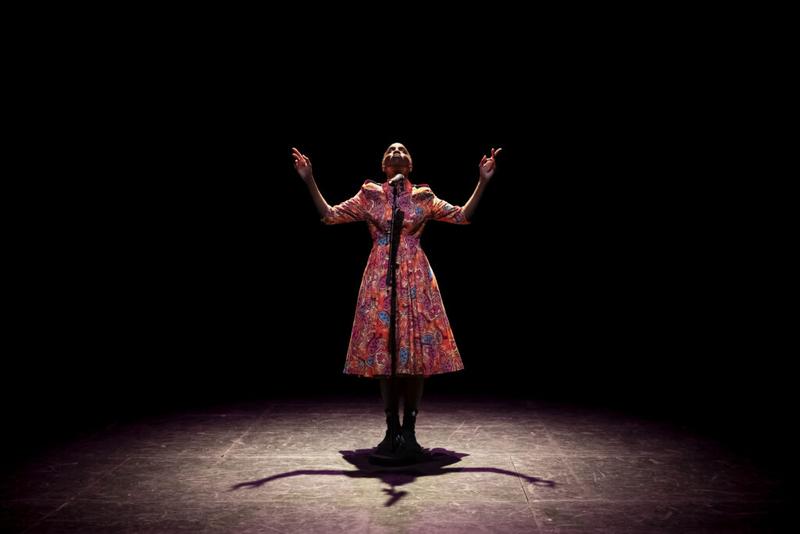 Le spectacle Portrait de Rita prend pour point de départ l’histoire de Mathis, un écolier de neuf ans, scolarisé près de Charleroi et victime de racisme. En réaction, il finit par se mettre en colère. Sa réaction est jugée incontrôlable par l’école qui décide d’appeler la police. Lorsque sa mère arrive sur place, après avoir été sommée par l’institutrice de venir, elle découvre son fils plaqué au sol par un agent de police qui l’étouffe avec violence, rappelant celle du policier américain qui s’acharnait en 2020 sur George Floyd jusqu’à le tuer. Cette histoire, Laurène Marx l’a découverte en 2023, lorsque la performeuse Bwanga Pilipili dit, à la Nuit de l’Amour aux Halles de Schaerbeek, un texte qui parle de violences policières et de cette agression subie par l’enfant noir de neuf ans. Comme c’est le cas depuis son entrée à la crèche belge, et même, depuis l’arrivée en Europe de sa mère, Rita Nkat Bayang, une femme d’affaires camerounaise qui a décidé de quitter Yaoundé, Mathis n’est jamais un enfant, mais toujours un Noir. Laurène Marx décide alors avec Bwanga Pilipili de rencontrer Rita Nkat Bayang qui leur livre le récit de sa vie, et avec elle, celles de Mathis et de toutes les personnes racisées. C’est la même Bwanga Pilipili, vêtue d’une robe fleurie et d’une paire de chaussures de boxe Adidas noires, qui leur prête sa voix, lorsqu’elle s’avance sur la scène du Théâtre Ouvert pour s’installer derrière un micro sur pied qui trône au milieu d’un plateau nu.