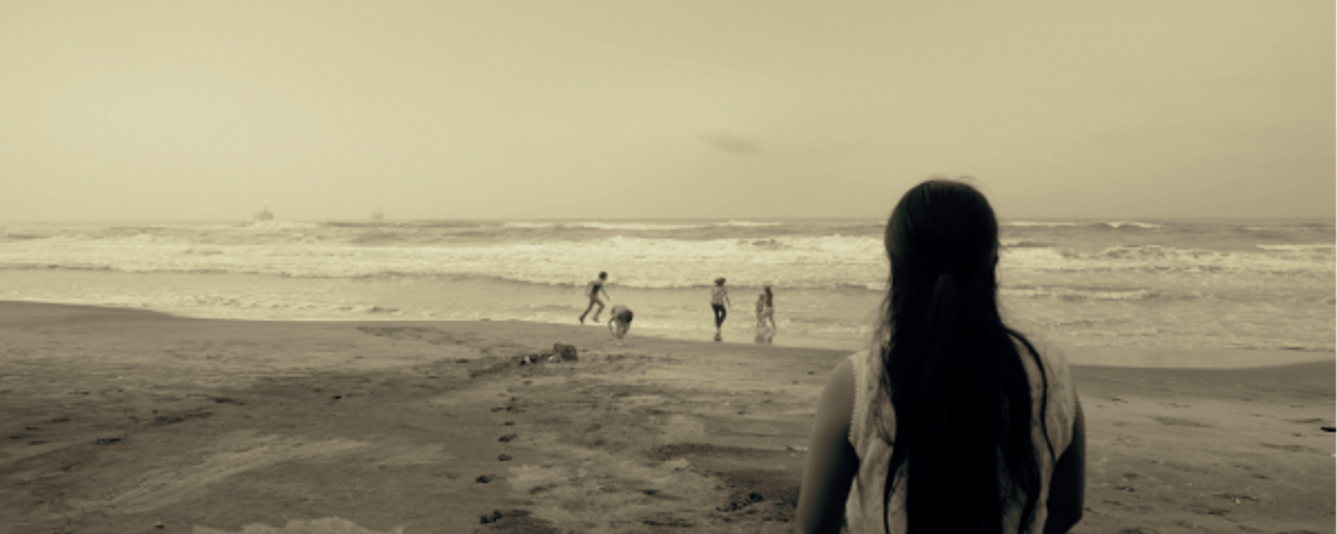 De retour sur la plage, Cléo regarde vers la droite, vers l’océan, vers le futur, vers le danger. Elle s’est éloignée du bord pour sécher le plus petit. Dans les vagues, il y a Paco et Sofi, on ne les voit pas, on voit seulement le visage de Cléo, inquiet, et on l’entend crier, elle crie leurs prénoms. Un nouveau traveling horizontal nous conduit avec Cléo jusqu’aux vagues. Le bruit des vagues se met à couvrir les cris de Cléo, il devient presque assourdissant. Cléo qui s’avance, Cléo que l’on accompagne à travers la houle, à travers sa peur, c’est une traversée initiatique, une épreuve qu’elle se force à endurer pour pouvoir sauver les enfants et les reconnaître comme les siens.