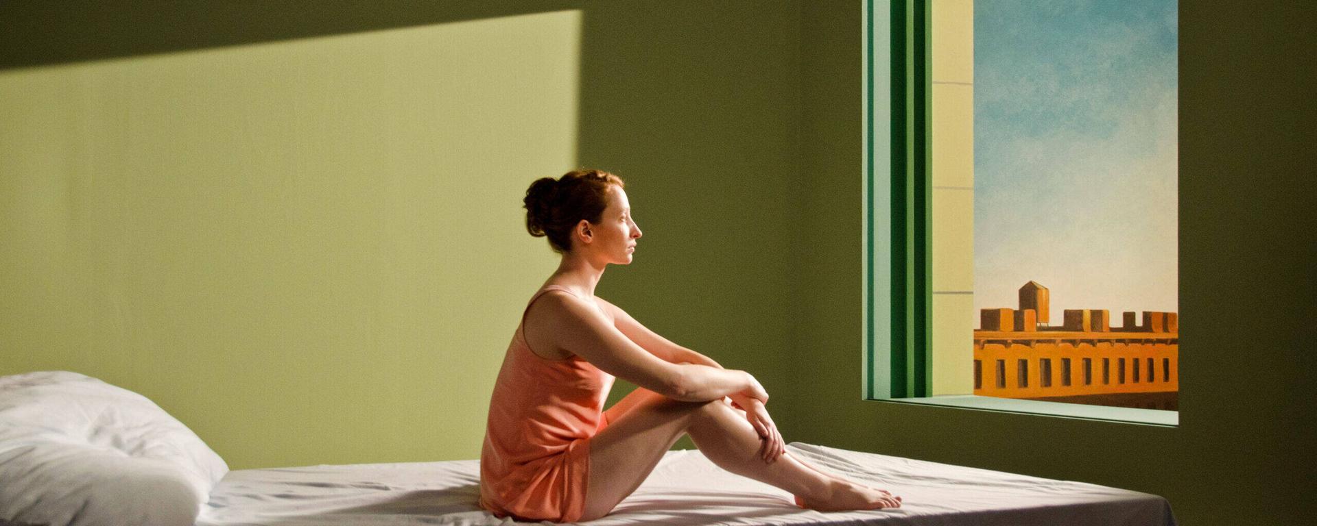 A l’intérieur de ces cadres, moins figés que sur les murs des musées puisque les rideaux s’agitent avec le vent et que les fenêtres s’ouvrent, va donc évoluer Shirley. La danseuse et actrice Stephanie Cumming incarne cette comédienne américaine qui exprime ces impressions dans un lancinant commentaire en voix-off.