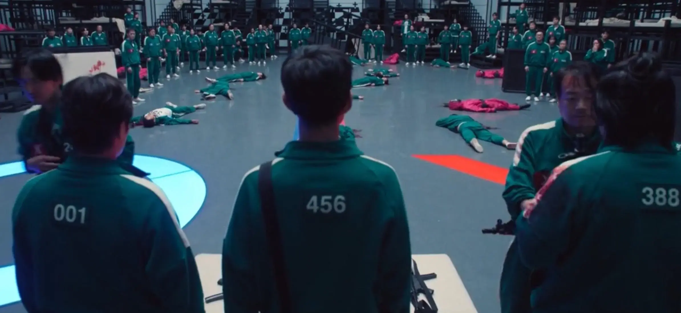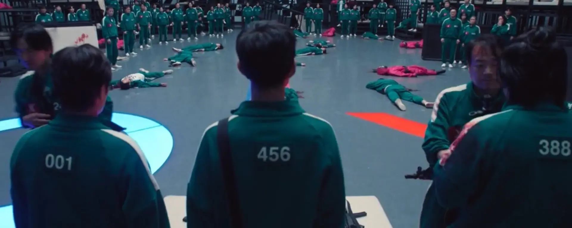 Comme toute communauté, Squid Game dispose de codes sociaux et de valeurs sensiblement similaires à la morale véhiculée par la société “du dehors”. Bien que la construction de cette morale résulte des interactions entre dominants et dominés, il faut ici attribuer un rôle prépondérant aux organisateurs du jeu dans la définition des valeurs imposées aux participants. Sur le papier, il s’agit de valeurs humanistes : la liberté (de partir ou de rester), l’égalité (entre les joueurs) et l’entraide (beaucoup d’épreuves se font en équipes).