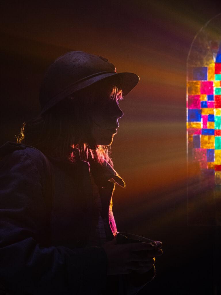 Les spectateurs qui viennent peu à peu remplir les gradins de la Cabane (la seconde salle du Théâtre Silvia Monfort) se voient confier de petits carnets aux couvertures de différentes couleurs où figure le titre du spectacle, « Partie ». Car, avec ces carnets de couleurs et les feuillets colorés qui le constituent, Tamara Al Saadi institue un véritable jeu avec son public qui devra donc être partie prenante de la pièce. Une fois le public au complet, la metteuse en scène, accompagnée de Justine Bachelet, la comédienne qui campera successivement le rôle de la mère du jeune Louis et ce dernier ensuite, d’Eléonore Mallo et de Jennifer Montesantos à la scénographie, à la conception technique et aux accessoires, entrent sur la scène où se dresse un panneau de bois aux diverses trappes et fenêtres coulissantes. Tamara Al Saadi livre alors aux spectateurs et spectatrices les règles de cette partie qui va se dérouler pendant près d’une heure et dont elle sera la cheffe d’orchestre. Par moments, elle soulèvera des trappes de différentes couleurs et elle révèlera, derrière l’une des fenêtres, l’intensité de la voix avec laquelle les spectateurs auront à prononcer les paroles qui se trouvent sur la page du carnet de la couleur indiquée sur le panneau. Avec finesse et intelligence, Tamara Al Saadi montre que la guerre est la faucheuse hasardeuse du jeu géopolitique, lointain et incompréhensible pour les milliers de vies qui, sans s’engager vraiment avec conviction, sinon dans les discours de haine contre les Boches, sont pourtant entièrement métamorphosées par cet événement singulier.