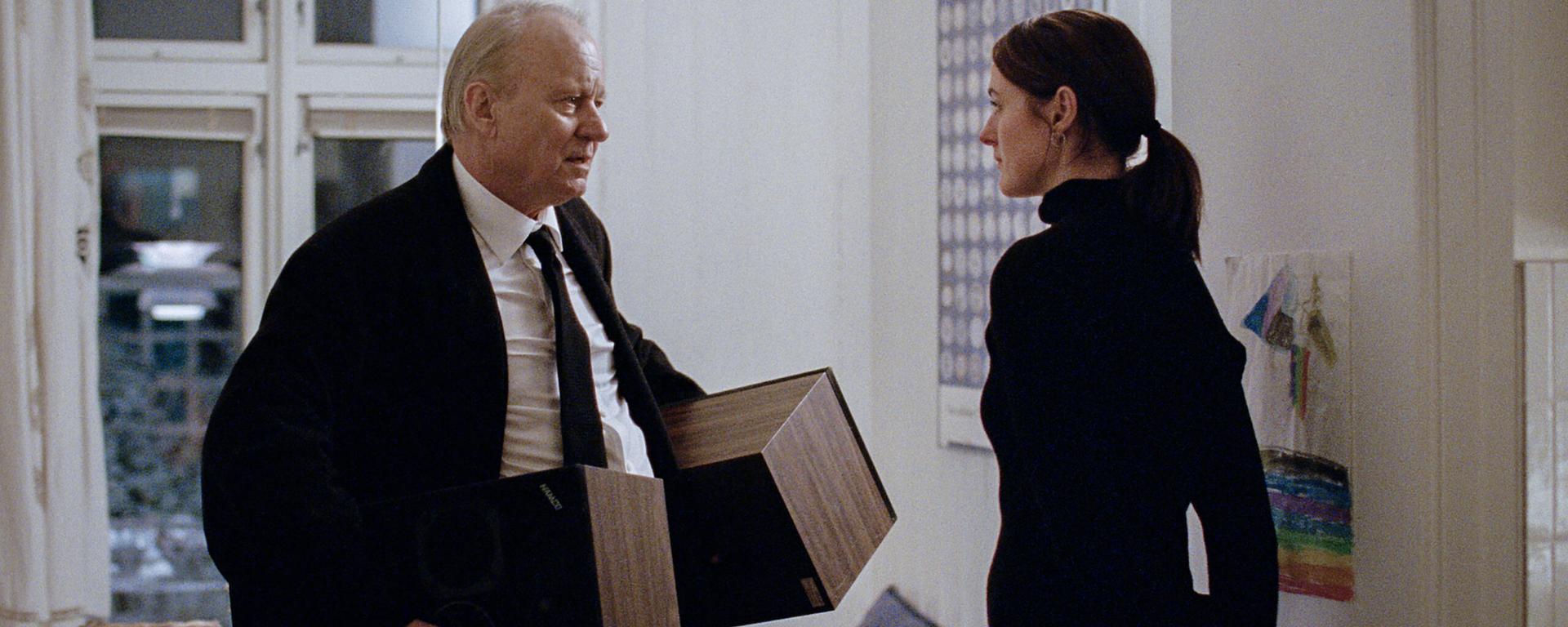 Au cœur de ce film-imbroglio aux sentiments contrariés et insolubles, une demeure – celle d’une famille dysfonctionnelle, où les « je t’aime » ne fusent pas. Architecture victorienne aux allures de maison bonheur, elle cristallise pourtant les origines du mal. Derrière la décoration soignée planent de nombreux secrets enfouis, des cris étouffés aux murmures chatouilleux d’anciens passagers, que le temps a tenté de glisser sous le tapis. Mais tout ce qui ne s’explique pas s’imprime et les murs fissurés ont des oreilles. Cette maison, c’est l’arbre généalogique d’une famille, celle que Gustav Borg (Stellan Skarsgård), propriétaire et réalisateur reconnu, a choisie pour y tourner son film-testament à forte valeur sentimentale. Via cette auto-fiction, il souhaite explorer son histoire, celle de sa mère Karen, suicidée par pendaison au milieu du salon familial, et, par effet domino, celle de ses filles, Nora et Agnès.