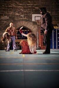 La personnalité propre de la pièce se niche sans doute dans des séquences non issues du documentaire et que Julie Deliquet ajoute : à la pause de midi, en l’absence des employé.e.s du Centre, les relations et les corps se détendent, et le gymnase devient un temps un espace joyeux et vivant, où l’on se défie au basket entre ancien détenu et policier, où l’on fait une vibrante performance soul et où l’on chante en choeur (avec le musicien qui partage la scène) une chanson folk, témoignage idéalisé d’une Amérique où l’art peut naître de la souffrance quotidienne. Ces moments d’humanité, qui font certes du bien au public au milieu de tant de violence symbolique et matérielle, suffisent-ils à donner à Welfare – version Deliquet – la justification de son projet ? Pas sûr.