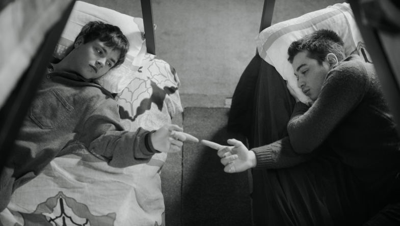 L’une des premières scènes du film s’ouvre sur une classe remplie d’adolescents en uniforme. C’est une leçon d’anglais et le microphone répète des phrases clichées et vides de sens. Ahmet (Doğa Karakaş) arbore un visage poupon et rêveur. Le choix du noir et blanc participe d’une esthétique nineties, quelque part entre un film indépendant européen et une imagerie musicale britannique. Jusqu’ici, le spectateur s’attend à suivre les péripéties d’un jeune garçon en proie aux émois de son âge. Mais les yeux bleus regardent par la fenêtre. Ahmet se détache de tous ceux qui se tiennent sages, ancrés dans un décor qui sied à leur posture et leur diction. Il déborde déjà presque du cadre, sa place est peut-être ailleurs. Pour cause, dès que la journée se termine, le garçon file en catimini, demande au bus de le déposer devant une maison, puis, s’échappe vers un autre bâtiment : un dortoir où on enseigne l’islam. Il est en retard, retire ses mocassins et s’affaire à rejoindre les autres garçons pour la prière. Derrière les barreaux, la résidence religieuse évoque déjà le secret et l’ostracisme.