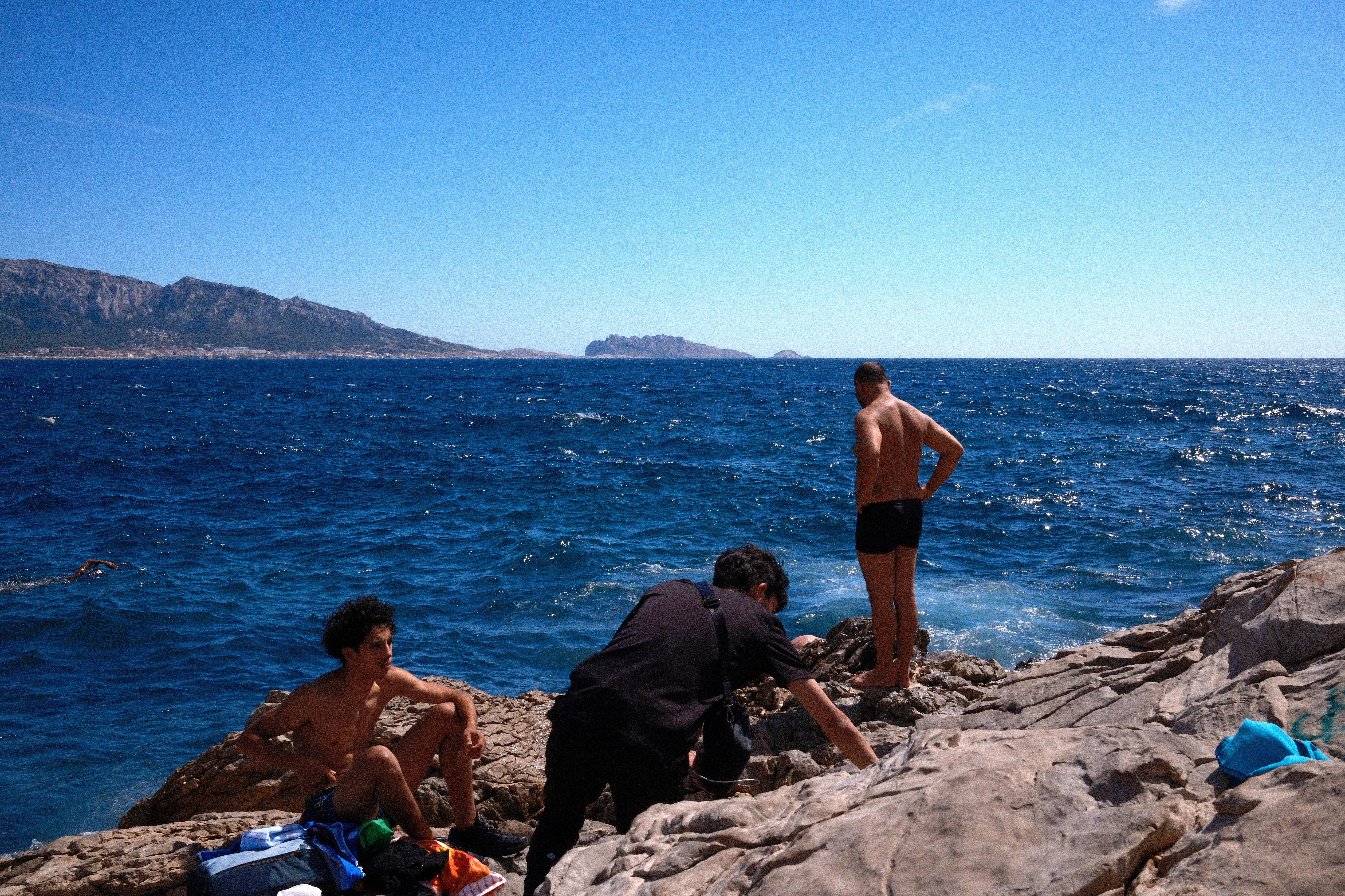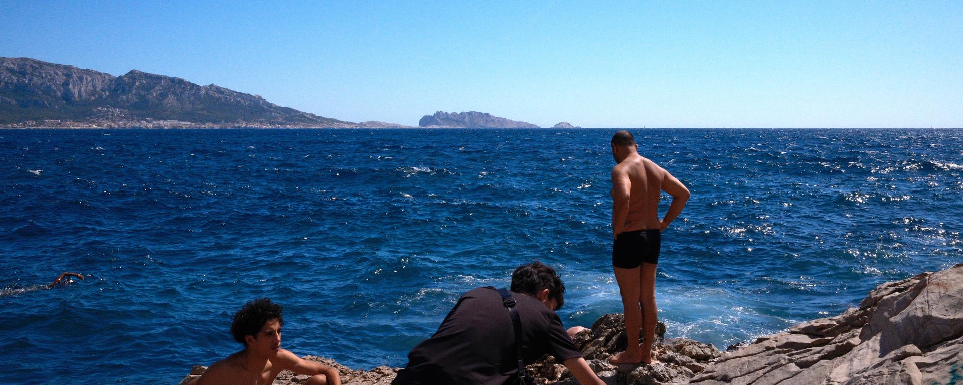 Je ne me perds pas dans le métro, les bus, je contemple l’horizon, la mer dans mon nez et avec Coco, on marche sur tes roches blanches. Les semelles on enlève les baskets, je déteste tes plages. La voûte plantaire se tend, les orteils se crispent, on avance. On ne va pas loin, jusqu’au bord de la pointe rocheuse, Coco a une crampe au mollet. Elle s’assoit et je descends le gros rocher qui nous sépare de l’eau. Je trempe le bout du pied, le sel mange ma peau, tu lèches mes orteils, je me jette.Ton crissement pénètre mes tympans, mon cerveau, ça m’avait tellement manqué, colonise-moi.