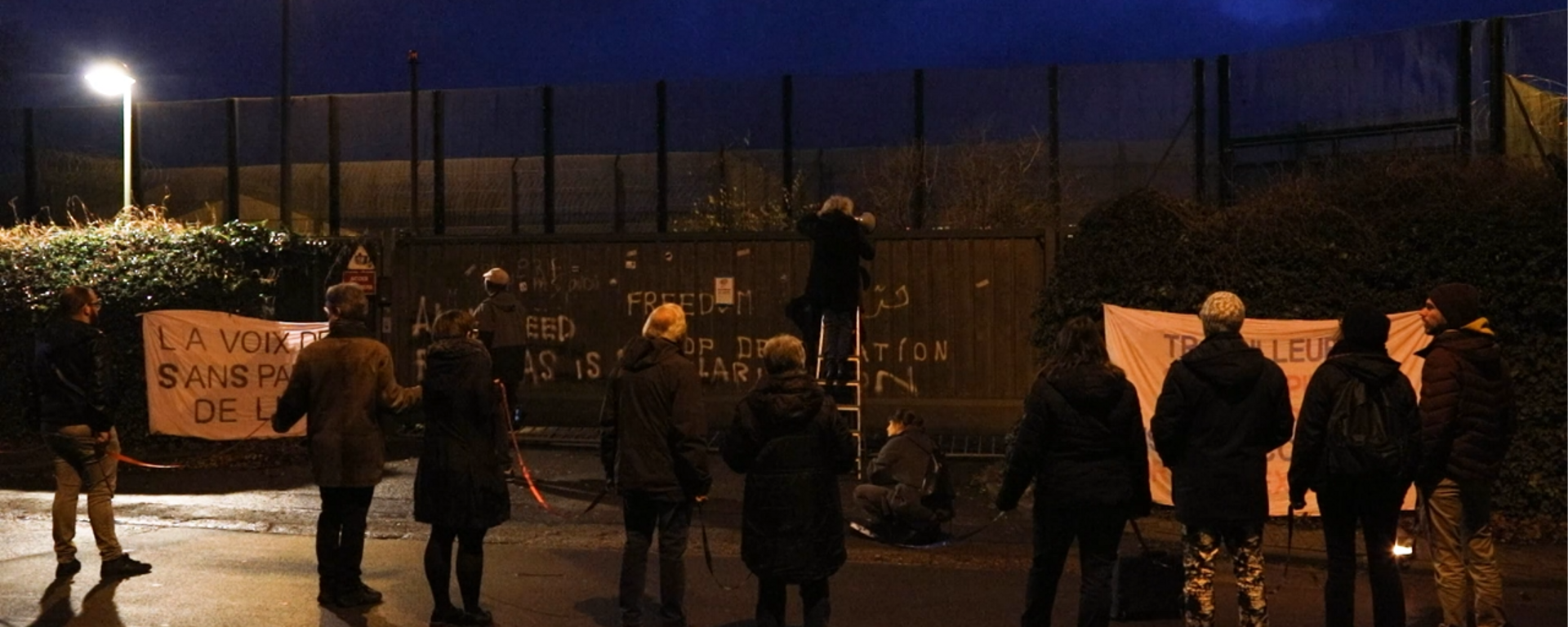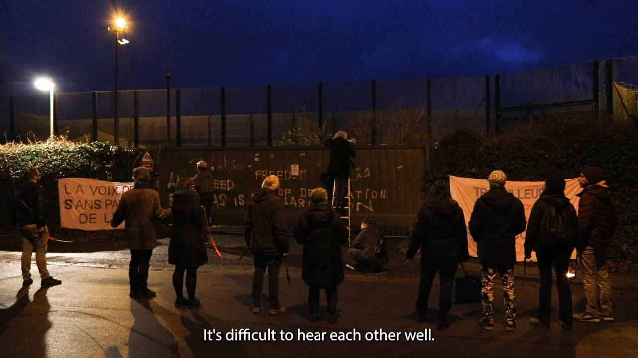 Gilles Vandaele : D’une frustration militante ! Nous manifestions depuis longtemps avec des camarades face aux CRA, à la fois pour protester contre les conditions inhumaines de détention, mais aussi pour exprimer notre soutien aux personnes emprisonnées et leur rappeler que l’on pensait à eux depuis l’extérieur. Mais j’avais l’impression que nous rentrions dans une forme de routine, et je m’interrogeais de plus en plus quant à l’efficacité de nos actions. C’est très probablement pour cette raison que nous avons décidé, avec mon co-réalisateur Martijn De Meuleneire, de réaliser From Afar : à la fois pour changer de méthode et de point de vue, mais aussi pour essayer de donner une plus grande visibilité à notre mouvement.